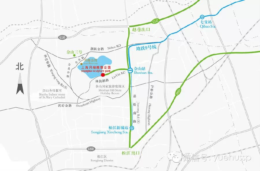 公交车:地铁9号线佘山站乘坐 松江92路空调(佘山汽车站方向), 在 月湖雕塑公园站下车即可到达园区.
